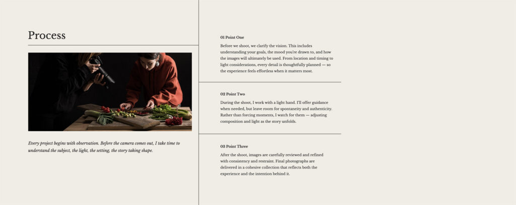 Their work lived in a place that didn’t fully support it. There wasn’t enough space to explain their process. Their values. The thinking behind what they do. The site showed the images, but not the depth.